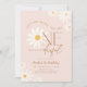 Isn't She Lovely Isn't She ONEderful daisy 1st birthday party invitation. Cute design in blush pink. Features daisy flowers and trendy modern typography script font. Perfect for a stylish boho first girls bday celebration. Personalize with your own details. Printed Zazzle invitations or instant download digital printable template.