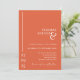 Cette faire-part de mariage épurée et minimaliste a été conçue avec une élégance contemporaine. Il présente une audacieuse palette de couleurs orangées de soleil couchant de vérone, offrant un look frappant mais intemporel mêlant lignes propres et touche glamour. Ajoutez l'URL de votre site Web mariage qui mettra à jour le code QR (ou supprimez-le si vous n'en avez pas besoin). Le design comprend également une chronologie personnalisable des événements, avec des icônes ajustables pour convenir à votre célébration unique. Parfait pour les couples qui souhaitent une ambiance moderne et design pour leur journée spéciale. Vous pouvez modifier le texte et la couleur de l'arrière - plan pour qu'il corresponde au jeu de couleurs de votre jour de mariage si vous le souhaitez. Cliquez sur Personnaliser/customiser pour plus de détails.