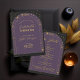 Un modèle d'invitation à la bachelorette moderne et élégant avec un thème céleste, lune et étoiles, tarot, voyeur, avec un cadre double, or boho arch et éléments célestes : le soleil, la lune, le chalice, constellations, étoiles... sur un schéma de couleurs violet, noir et or (l'or est un effet numérique). Une amusante astrologie, horoscope, zodiaque, invitation de voyage à la bachelorette sur le thème céleste - à la Nouvelle-Orléans mais pas seulement. Parfait pour toute soirée de bachelorette mystique et magique.