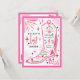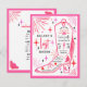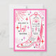 Invitation à une soirée de célibataire sur le thème de la dernière cowgirl de l'espace disco avec une illustration d'une botte de cowgirl avec franges, rose, éclair, cœurs et étoiles avec un schéma de couleurs rouge, rose et noir. Le verso comporte l'itinéraire.
