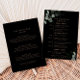 Cette carte d'itinéraire noir minimaliste pour mariage d'eucalyptus est parfaite pour compléter votre mariage rustique. Le design présente un feuillage d'eucalyptus vert aquarelle dans un arrière - plan noir.