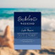 Une plage ou bachelorette nautique week-end d'invitation modèle qui présente une aquarelle peinte abstrait arrière - plan des vagues d'océan bleu profond et la calligraphie moderne pour le titre : "bachelorette". Modèles au dos pour l'itinéraire. Classé et élégant, simple et moderne, il est un choix agréable pour un été, une plage, l'océan ou la célébration maritime avant le mariage.