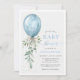 Invitation It's A Boy Blue Balloon Bow Greenery Baby Shower