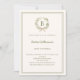 A soft ivory colored background, decorated with a dusty green, greenery bow and a frame. Personalize and add monogram letter, initial, name and party details.