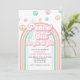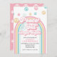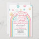 Invitation rétro inspirée de l'arc-en-ciel de Peace Out Single Digits pour 10e anniversaire avec des polices et des couleurs des années 70.