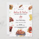 Préparez-vous à une expérience appétissante avec notre invitation à la fête du barbecue! Ce design animé est doté d'une bordure sur le thème de la cuisine qui fera de vos invités un grand plaisir pour la fête. La frontière comprend des illustrations d'un cheeseburger juteux, de la viande et des légumes grillés colorés, un délicieux hot dog, un verre rafraîchissant de cola avec de la glace, un verre de thé glacé avec des tranches de citron, un pot de sauce barbecue, et un grill chargé de côtes couvertes de sauce barbecue. Confetti et éléments décoratifs ajoutent à l'ambiance festive et estivale. Le thème général est estival et festif, ce qui en fait l'endroit idéal pour tout événement autour du barbecue ou de la nourriture. Les couleurs vives et les illustrations culinaires appétissantes attireront vos invités.