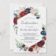 Cette invitation de confirmation de jardin bordeaux automne est parfaite pour un événement d'automne. Le design présente de magnifiques fleurs d'aquarelle rose vif, rouge, marine et bordeaux, des fleurs et des feuilles verts disposés dans un cadre floral automnal animé.