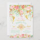 Elégant design invitation d'anniversaire à thème de fée avec parties scintillant dorée et effets de feuille d'or et effets d'aquarelle roses et arrangement floral secret, jardin enchanté.