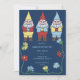 Jetez la parfaite fête d'anniversaire sur le thème du gnome. Ces invitations personnalisés présentent des illustrations mignonnes de gnomes de jardin aux accents floraux contre un arrière - plan bleu marine. Il y a beaucoup de place pour inclure tous les détails de votre fête en lettres bleu clair. L'envers a un motif de coordination des gnomes et des fleurs.