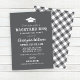 L'invitation à la fête "Jardin BBQ" présente un motif de casquette de graduation, un texte personnalisé élégant dans des polices rustiques et modernes, un défilement, des éléments de design motif plaid, et du texte blanc. La couleur arrière - plan grise peut être customisée. Idéal pour une soirée de remise des diplômes d'été en plein air décontractée.