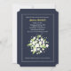 Une élégante invitation, en bleu profond, avec un bouquet encadré de fleurs de jasmin. (FP). <br/>() La carte est facile à customiser avec votre libellé, police, couleur de police et choix de six types de papier.<br/>() Pas exactement ce que vous cherchez? Tous nos produits peuvent être conçus sur mesure pour répondre à vos besoins sans frais supplémentaires.<br/>() Il suffit de nous contacter à askpixieprints@aol.com .<br/>(b) Coordonner les produits disponibles :