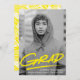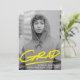 Invitations modernes et branchés de la fête de remise des diplômes avec la photo verticale senior du diplômé avec "Grad" en lettrage main jaune vif avec un trait de soulignement ci-dessous. Personnalisez le devant des invitations à la fête de remise de diplômes en ajoutant le nom du diplômé, le nom de l'école et l'année de remise de diplômes. L'invitation inverse pour afficher les détails de votre fête de remise de diplômes avec un arrière - plan de coups de pinceau jaunes et blancs.