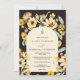 Arche fleurie de tournesol jaune chic douche nuptiale invitation avec joli jardin tournesol jaune pays, fleurs automnales rustiques et éléments botaniques autour de l'arche jaune modifiable avec une police de brosse script moderne sur brun foncé.