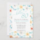 Invitation de 80e anniversaire jaune et turquoise simple aquarelle florale avec écriture de script élégante.
