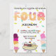 Dégustez le grand jour de votre petit avec cette invitation d’anniversaire "Je crie, nous crions, nous crions tous pour la crème glacée" ! Doté de cônes de crème glacée colorés, d'arrosages et de lettrages ludiques, il est parfait pour une fête cool et délicieusement amusante. Personnalisez avec le nom de votre enfant, son âge, les détails de la fête et les informations RSVP pour en faire le vôtre. Que vous soyez l’hôte d’un gala de crème glacée intérieure ou d’un jardin scoop fest, cet invitation fera le bonheur de tous ! Détails : ・ Texte et polices entièrement personnalisables ・ Imprimé sur des cartons de qualité supérieure