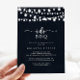 Cette invitation à la fête de fiançailles rustique du barbecue "I Do" est parfaite pour une fête de fiançailles moderne, un dîner de répétition, une douche de couple, une après-soirée ou tout événement mariage. Le design présente de belles lumières à cordes peintes à la main dans un arrière - plan bleu foncé. Le design sobre et élégant présente une typographie de script classique et sophistiquée en noir et blanc.