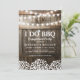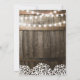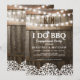 Cartes d'invitation de fiançailles couple Rustic "Je fais du BBQ" avec un fond de tonneau en bois de grange de campagne, guirlandes lumineuses, fleurs de baby's breath, alliance de mariage, votre monogramme et un modèle de célébration de fête de couple facile à personnaliser.