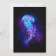 Grande méduse bleue, artistiquement dessinée, brillante, brillante, avec de longues tentacules sur arrière - plan noir avec bioluminescence violette. Méduse brillante.