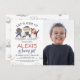 Préparez-vous à une fête d'anniversaire sur le thème du ninja. Cette conception dynamique présente une aquarelle captivante illustration de trois petits ninjas, qui frappent chacun leur pose d'arts martiaux préférés, émergeant d'une explosion de fumée, ou flottant sur un nuage. Customisez l'invitation en ajoutant une photo personnalisée du garçon d'anniversaire sur le côté droit. L'expression ludique "Let's Kick It!" au-dessus des ninjas combine le concept de traîner avec le monde des arts martiaux. L'invitation appelle tous les ninjas à se joindre à la fête, avec le nom du garçon d'anniversaire en lettres rouges gras et l'âge en script bleu amusant. Les détails de l'événement sont présentés dans une typographie simple et propre, avec des étoiles ninja encadrant les informations importantes de la date et de l'heure. Retournez la carte pour révéler un motif de nuages et d'armes étoiles ninja. Parfait pour les 4 à 10 ans, ce design énergique donne le ton d'une fête d'anniversaire passionnante et mémorable qui promet action, aventure et plein de plaisir. Customisez cette invitation afin de refléter les détails spécifiques de votre parti. N'hésitez pas à m'envoyer un message pour toute question, veuillez noter que je ne peux pas modifier une commande existante. Parcourez notre collection pour plus d'invitations d'anniversaire de garçon!