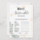 Amusez vos invités avec ce jeu de Fête des mariées commun amusant - Word Scramble. Bridal Word Scramble est un jeu de douche nuptiale facile que les invités de tous les âges apprécieront. Invités- joueurs essaient de débrouiller les mots liés au mariage aussi rapidement que possible. La Carte est créée en tant que modèle afin que vous puissiez changer les "mots brouillés" existants Design caractéristiques coin gauche verdure incorporée dans un rectangle brillant avec arrière - plan gris verdâtre. Simple et élégant. Ce modèle de jeu de douche nuptiale combine deux polices différentes pour un look plus dynamique. En coque, vous avez besoin d'aide sur la conception ou les mots changeants être libre de contacter le magasin.