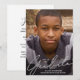 Cette carte de graduation simple et moderne présente une superposition de script en faux feuille d'argent et une photo complète. Sur le devant, "Graduate" est affiché en bas en écriture manuscrite sur une grande photo verticale. Ajoutez le nom et la photo de votre diplômé, l'année de remise des diplômes et l'école au premier plan. Au verso, vous pouvez ajouter les détails de la fête de remise de diplômes.