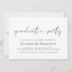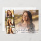 Élégant script photo superposition de la carte plat d'invitation de la fête de graduation avec la photo du diplômé sursuperposé avec une bande de trois petites photos carrés et "diplômé" dans un mince script moderne et leur nom et année de classe dans la simple typographie. Au verso, ajoutez les détails de la fête de remise de diplômes.