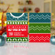 Ce design moderne bleu, rouge et vert, laide douce Noël avec un pull de vacances moche à l'avant, rempli de poinsettias, branches saintes et baies, sucres de canne, pins de Noël, flocons de neige et étoiles, rennes, pains de gingembre, cloches et bien plus encore. Le fond de l'invitation est un design festif bleu, rouge et vert rempli de flocons de neige. Ce design est parfait pour une fête en pull moche de Noël. Vous pouvez customiser tous les détails de votre événement. Voir toute la collection correspondante !