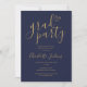 Cette invitation chic, moderne marine bleu et or script "grad party" graduation party peut être personnalisée avec la photo spéciale de votre grad au verso. Conçu par Thisisnotme©