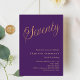 Une invitation design et moderne pour une fête de 70e anniversaire. Un arrière - plan de couleur violette et le mot Soixante-dix écrit avec d'élégantes grandes lettres de script en faux or. Personnalisez et ajoutez un nom et des détails du parti.