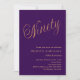 Une invitation design et moderne pour une fête du 90ème anniversaire. Un arrière - plan de couleur violette et le mot Ninety écrit avec d'élégantes grandes lettres de script en faux or. Personnalisez et ajoutez un nom et des détails du parti.