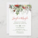 Jingle et mêle l'invitation de fête de Noël. Ce design présente des détails floraux hivernaux et un joli script rouge