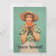 Une femme joyeuse en chapeau de soleil et chemise fleurie profite d'une tranche de pastèque contre un arrière - plan turquoise vibrant, capturant un moment parfait de bonheur estival.