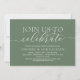 Modern Romantic Calligraphy, classy sage green, Wedding Rehearsal Dinner invitation card (Join us to celebrate). It is perfect for your wedding rehearsal dinner celebration party, before your best day. Add your details in matching lettering.