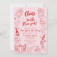 Bague au Nouvel An avec éclat et style! Cette adorable invitation à la fête du Nouvel An, dessinée à la main, présente de charmants gribouillis en rouge festif, dont des verres à vin clinquants, des bouteilles de champagne, des étoiles, un décor de fête et un cadre confortable pour dîner. La disposition ludique mais élégante dégage des vibrations joyeuses tout en gardant les choses modernes et amusantes.L'avant dit "Cheers to the New Year !" tandis que le dos continue la célébration avec "Cheers to 2026" et une illustration en verre minimale et élégante — parfaite pour donner le ton de votre soirée inoubliable. Idéal pour les fêtes de maison, les dîners-rassemblements ou les célébrations de compte à rebours. Customisez avec les détails de votre fête et préparez les confettis !