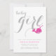 Jolie fuchsia rose baleine typographie bébé douche fille. Il contient le texte "Petite fille" et une petite baleine rose avec le coeur. Le dos comprend un motif de baleines.