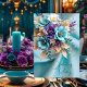 Jolie fête d'anniversaire soie Turquoise bleu violet Floral. Fête d'anniversaire Fleurs de soie Bébé souffle (Attention, ce ne sont pas de vrais bijoux, ce sont toutes des images plates) Ajouter l'âge Images Fête d'anniversaire. Vous pouvez changer d'âge ! Customisez avec vos propres détails.