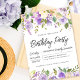 Honorer une femme spéciale avec cette invitation élégante et féminine 30e anniversaire de fête. Les détails de la fête d'anniversaire sont entourés de bordures florales pourpres du haut et du bas. Les éléments floraux sont nichés dans des feuilles verts. Bien qu'il s'agisse d'un design traditionnel, le feuillage botanique ouvert et aéré et le texte lui donnent une ambiance contemporaine. Cet article fait partie de la collection Rustic Purple Floral Botanical 30th Birthday.
