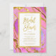 Ces magnifiques invitations à la douche nuptiale sont ornées d'un look arrière - plan geode peint, avec différentes nuances de rose et de faux or accents et cadre. La typographie moderne tendance en faux or script typographie apparaît également.