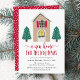 Invités Invitations à votre fête de réveil en style avec notre invitation New Home For The Holidays. L'invitation à la chaleur d'hiver présente une maison illustrée recouverte de neige, de pins et de typographie à lettres manuscrites dans des tons beiges et rouges. Personnalisez les invitations du ménage en ajoutant vos coordonnées et vos coordonnées. L'envers affiche un design pointillé rouge et blanc.
