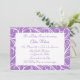 Des tourbillons blancs géants encadrent cette invitation baby shower magnifiquement. Il est montré sur le papier de base; cependant, je recommande le poids et la texture du papier de lin. (disponible en plusieurs couleurs différentes) Cette invitation a l'air superbe avec l'Enveloppe Pois jolie violet.