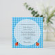 Jolie campagne style bleu clair plaids et dame bugs invitations de mariage. Conçu avec des plaids bleu clair classique, des coccinelles rouges et des tournesols jaunes. Amusez-vous et amusez-vous le jour de votre mariage !