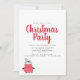 Une jolie invitation à la fête de Noël avec une adorable illustration de pingouin en noir, rouge et blanc, et une police de style lettré de brosse rouge. Personnalisez avec vos détails de fête dans les polices sans serif modernes. L'inverse est en rouge festif.
