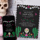 Day of the Dead Sweet 16 Invitation avec crâne à sucre fleuri, fleur de fêtes mexicaine, cactus et bouts de crâne. Sweet 16 et le nom de la fille d'anniversaire est écrit en os et typographie décalée. L'invitation est également décoré à l'arrière et la modèle est prête à vous customiser avec vos détails. Consultez ma collection Dia de los Muertos pour trouver d'autres styles et articles correspondants.