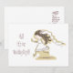 Carte d'invitation de mariage avec une mariée mignonne courant vers le marié.