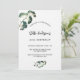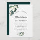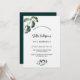 Avant : un arrière - plan blanc élégant décoré de simples feuilles de ginkgo doré. Personnalisez et ajoutez votre nom et les détails de votre fête. Retour : vert émeraude arrière.