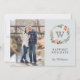 Envoyez les salutations de cette année avec style. Votre photo spéciale sera très belle dans ces cartes photos de vacances uniques et modernes avec une couronne botanique de fleurs d'hiver, mistletoe et baies, vous monogramme dans une police élégante, un message personnalisé et une signature. Utilisez le modèle pour ajouter une photo verticale et vos noms. Carte inversée à un motif de feuillage sur un arrière - plan gris foncé. Toutes les polices et couleurs peuvent être modifiées pour correspondre à votre schéma de couleurs photo.