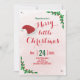 Ce design présente une joyeuse petite invitation de Noël avec chapeau de Père Noël. Il présente un thème festif et ludique de fête de vacances avec typographie de script minimaliste moderne, calligraphie de fantaisie, et un simple code couleur rouge et blanc.