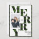 Doté d'un plaid typographique de buffle vert et noir / à damiers mot motif "MERRY" dans un agencement semi-circulaire cette carte en vichy moderne comprend un petit espace vertical à gauche pour vous la meilleure photo de portrait et le texte noir qui peut être personnalisé. Facile à customiser, faites une grande impression avec cette carte de voeux rustique encore moderne. La couleur verte peut être facilement changée pour s'adapter à votre schéma de couleurs.