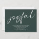 Contemporain Joyeux Script de Noël Vert Soirée. Disponible numériquement et imprimé. Personnalisez facilement avec vos détails de fête. Joyful est dans un grand jeu moderne Calligraphie en blanc qui peut être changé à une autre couleur si vous le souhaitez, comme le peut l'arrière - plan vert foncé de chaque côté via l'option Modifier plus loin.