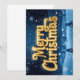 Das festliche Design "Merry Christmas" kombiniert eine glänzend, leuchtende goldene Schrift mit einer verschneiten Landschaft. Ideal für Grußkarten, Geschenke oder Dekorationen, die Weihnachtsgrüße mit einer zauberhaften Winterlandschaft überbringen sollen.